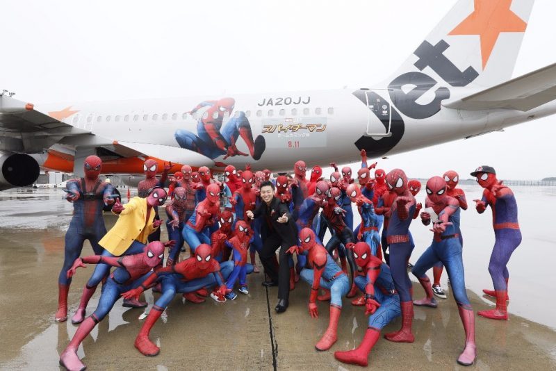 สายการบินเจ็ทสตาร์เจแปนโดย มร. มาซารุ คาตาโอกะ ประธานสายการบินเจ็ทสตาร์เจแปน (ขวา) จับมือกับมาร์เวล สตูดิโอและโซนี่ พิคเจอร์ส์เปิดตัว “สไปเดอร์-เจ็ท” เครื่องบินโดยสารลายสไปเดอร์แมนต้อนรับภาพยนตร์ซูเปอร์ฮีโร่ใหม่ล่าสุดในจักรวาลมาร์เวลเรื่อง สไปเดอร์-แมน: โฮมคัมมิ่ง (Spider-Man: Homecoming) ในประเทศญี่ปุ่นที่มีกำหนดฉายในช่วงเดือนกรกฎาคมนี้ ด้วยเที่ยวบินสไปเดอร์-เจ็ทปฐมฤกษ์ในเส้นทาง โตเกียว นาริตะ – โอซาก้า โดยมีเหล่าสไปเดอร์แมนและสไปเดอร์วูแมนกว่า 40 คนร่วมสร้างสีสันไปกับเที่ยวบินนี้พร้อมของที่ระลึกสุดพิเศษจากสายการบิน นอกจากนี้ยังเตรียมแคมเปญซัมเมอร์สุดพิเศษอีกมากมาย รายละเอียดเพิ่มเติมที่ www.jetstar.com/jp