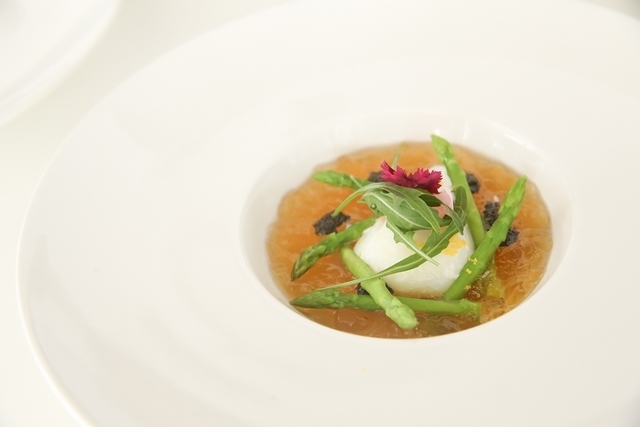 ได้แก่ ทาสมาเนียนแซลมอนคลุกเคล้าสาหร่ายญี่ปุ่นโดยใช้ความร้อนที่อุณหภูมิ 45 องศาตั้งไฟเป็นเวลา 35 นาที ทานคู่กับซอสพลัม นอกจากนี้ยังมีเป็ดอบทานคู่กับซอสสไตล์ญี่ปุ่นและหอยเป๋าฮื้อนึ่งกับเห็ดกิโรล เสิร์ฟพร้อมดาชิฟักทอง(ดาชิ คือผงปรุงรสสไตล์ญี่ปุ่นทำจากสาหร่ายแห้งและปลาทูน่ารมควันอบแห้ง) (An Amuse Bouche of Abalone, Salmon, Duck and Pumpkin) ไข่ต้มออนเซ็น ใช้ความร้อน 72 องศา ต้มเป็นเวลา 30 นาที ทำให้ได้ไข่แดงที่สุกกำลังดี มาพร้อมกับเยลลี่ดาชิและหน่อไม้ฝรั่งเสิร์ฟกับเห็ดทรัฟเฟิล ไข่แดงบดและผักไมโครกรีน (Onsen Egg in Dashi Jelly) และ ไอศกรีมนมสดและราสเบอร์รี่ ราดซอสสาเกมะม่วง (Sake Zabajone Mango served with Raspberry and Milk Gelato together with Matcha Langue De Chat Green Tea)