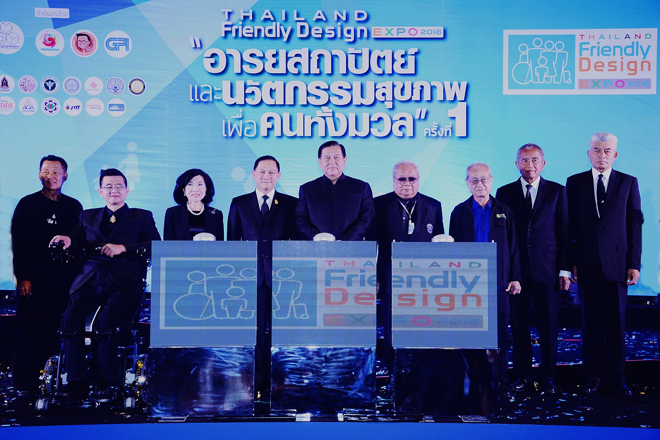 พล.อ.ธนะศักดิ์ ปฏิมาประกร รองนายกรัฐมนตรี (คนกลาง ) ประธานเปิดงานมหกรรมอารยสถาปั ตย์และนวัตกรรมสุขภาพเพื่อคนทั้ งมวล ครั้งที่ 1 และมอบป้ายประกาศเกียรติคุณ “11 สุดยอดอารยสถาปัตย์แห่งปี 2559” โดยมี พล.ต.อ. อดุลย์ แสงสิงแก้ว รัฐมนตรีว่าการกระทรวงพัฒนาสั งคมและความมั่นคงของมนุษย์, ดร. ปราจิน เอี่ยมลำเนา ประธานที่ปรึกษา FD Expo, กฤษนะ ละไล ประธานมูลนิธิอารยสถาปัตย์เพื่ อคนทั้งมวล, อ.เฉลิมชัย โฆษิตพิพัฒน์ และ อ.เนาวรัตน์ พงษ์ไพบูลย์ ศิลปินแห่งชาติ ร่วมเป็น สักขีพยาน ณ ศูนย์การแสดงสินค้าอิมแพค เมืองทองธานี ฮอลล์ 6 เมื่อวันที่ 30พฤศจิกายน ที่ผ่านมา
