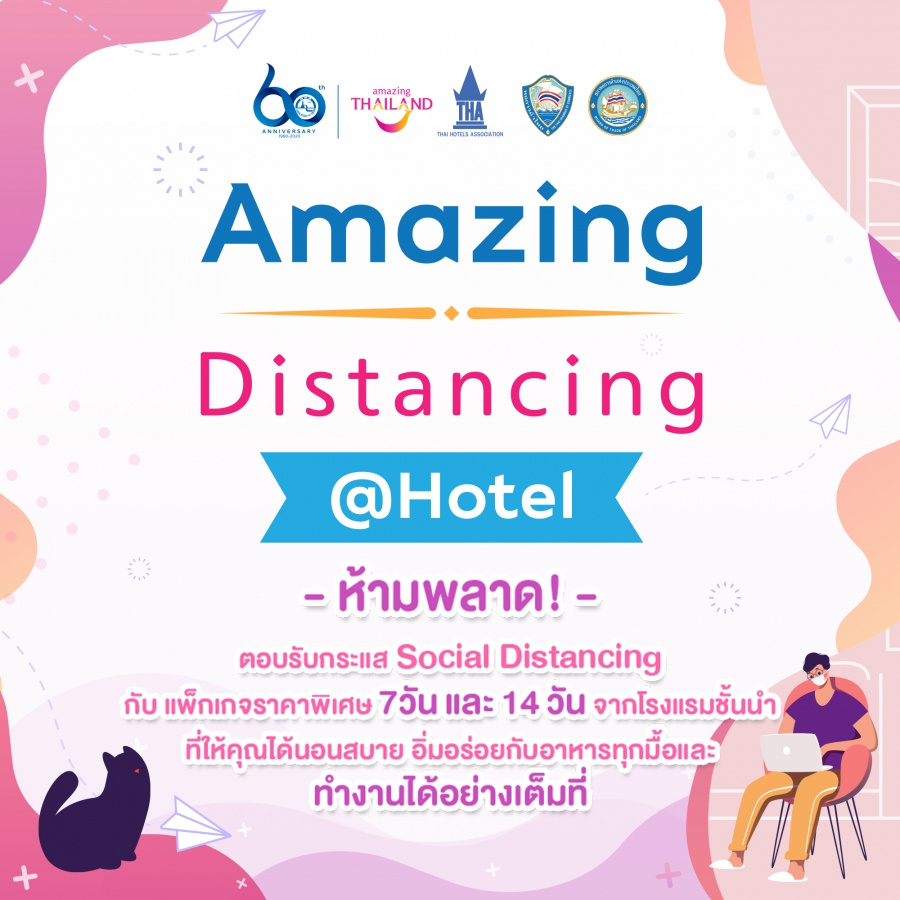 การท่องเที่ยวแห่งประเทศไทย (ททท.) จับมือกับสมาคมโรงแรมไทย, สมาคมหอการค้าไทย และสภาอุตสาหกรรมท่องเที่ยวไทย จัดโครงการ Amazing Distancing @Hotel ส่งเสริมการรับผิดชอบต่อสังคม ด้วยการกักตัวอยู่ในที่พักของตนเองในช่วงสถานการณ์แพร่ระบาดของไวรัสโควิท-19 ในปัจจุบัน