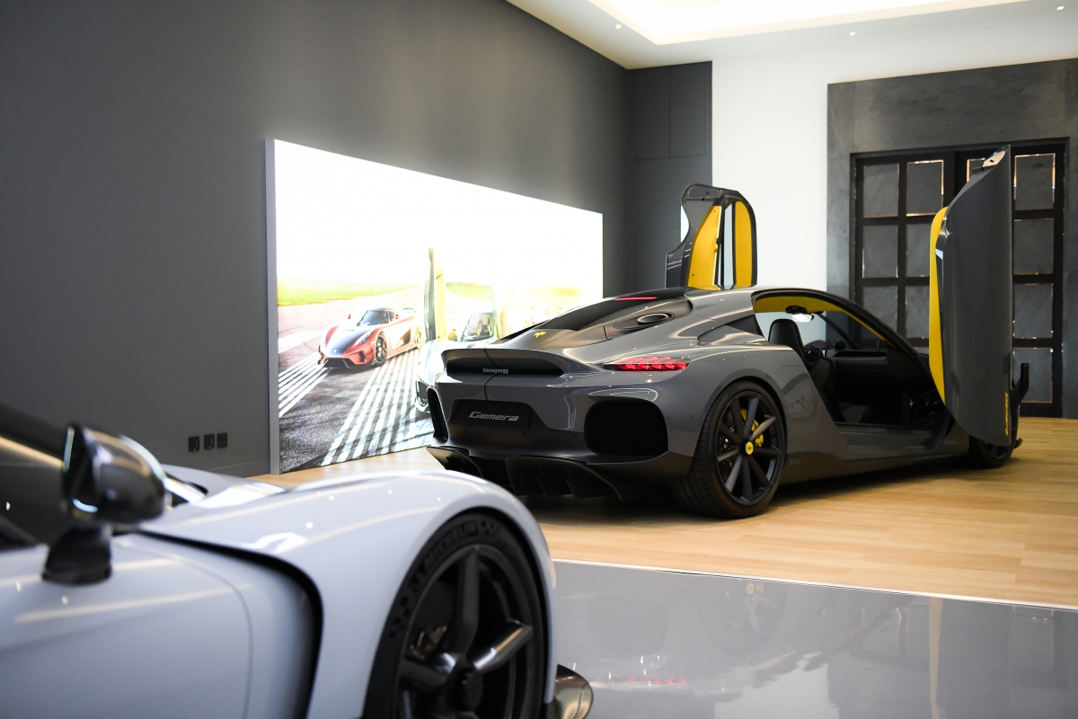 Koenigsegg Gemera (เคอนิกเส็กก์ เกเมร่า) Mega-GT สี่ที่นั่งคันแรกของโลก (The World’s First Mega-GT and Koenigsegg’s First Four Four) ถูกออกแบบมาตอบโจทย์ทุกการใช้งานอย่างแท้จริง ด้วยที่นั่งที่สามารถรองรับสรีระของผู้ใหญ่ได้ถึง 4 ที่นั่งและยังสามารถเก็บกระเป๋าสัมภาระได้ถึง 4 ใบ ทั้งยังมาพร้อมที่วางแก้วถึง 8 จุด จอแสดงผลข้อมูลต่างๆทั้งด้านหน้าและด้านหลัง จุดชาร์จโทรศัพท์แบบไร้สาย ระบบ Apple CarPlay ลำโพง 11 จุด และระบบเบาะปรับด้วยไฟฟ้าซึ่งช่วยให้ทุกการเดินทางเป็นไปได้อย่างสะดวกสบาย หัวใจหลักของ Gemera คือเครื่องยนต์เบนซิน 3 สูบ เทอร์โบคู่ ขนาด 2.0 ลิตร ที่มีชื่อเรียกว่า “Tiny Friendly Giant (TFG)” มาพร้อมมอเตอร์ไฟฟ้า 3 มอเตอร์ มอบพละกำลังสูงสุด 1,700 แรงม้าและแรงบิดสูงสุดที่ 3,500 นิวตันเมตร ช่วยให้ Gemera ทำอัตราเร่ง 0-100 กม./ชม. ได้ในเวลาเพียง 1.9 วินาทีเท่านั้น ด้านเทคโนโลยีช่วยเหลือในการขับขี่ของ Gemera นั้นได้ติดตั้งทั้งระบบเลี้ยวล้อหลังและระบบกระจายแรงบิดเพื่อมอบการควบคุมที่ฉับไวและมั่นใจยิ่งขึ้นเพื่อให้ผู้ขับขี่พร้อมเผชิญทุกสภาพถนน นอกจากสมรรถนะเครื่องยนต์ที่เร้าใจแล้ว Koenigsegg Gemera ยังสามารถขับเคลื่อนได้ด้วยมอเตอร์ไฟฟ้าเพียงอย่างเดียวด้วยความเร็วสูงสุดถึง 300 กม./ชม. และมีพิสัยเดินทางสูงสุด 50 กม. เมื่อต้องการเดินทางโดยปราศจากมลพิษหรือสามารถขับเคลื่อนในรูปแบบไฮบริด โดย Gemera ถูกออกแบบมาให้รองรับน้ำมันเชื้อเพลิง E85 ได้หากต้องใช้เครื่องยนต์ในการขับเคลื่อนเพื่อเป็นมิตรต่อสิ่งแวดล้อมสูงสุดและมีพิสัยเดินทางไกลสุดถึง 950 กม. Gemera นั้นถูกออกแบบด้วยแนวคิดการใช้งานที่ครอบคลุมทั้งการใช้ในเมืองด้วยความเร็วต่ำและขับขี่บนทางหลวงด้วยความเร็วสูง ด้วยระบบความปลอดภัยตั้งแต่โครงสร้างตัวถังแบบ Carbon Fiber Monocoque ถุงลมนิรภัย 6 ใบ ระบบช่วยเหลือการทรงตัว ระบบป้องกันล้อหมุนฟรี ระบบเบรก ABS และระบบช่วยเหลือการขับขี่ ADAS 2.5 ยิ่งไปกว่านั้นยังมีจุดยึด ISOFIX สำหรับเบาะหลังทั้ง 2 ที่นั่งอีกด้วย ดีไซน์ภายนอกของ Gemera ได้รับการออกแบบประตูใหม่ที่เรียกว่า “Koenigsegg Automated Twisted Synchrohelix Actuation Doors (KATSAD)” ซึ่งสามารถเปิดได้กว้างพอที่ผู้โดยสารด้านหน้าและด้านหลังสามารถเข้ารถไปได้พร้อมกันเลยในเวลาเดียวกันทั้งยังคงรูปลักษณ์แบบรถสปอร์ต 2 ประตู บริเวณด้านบนประตูนั้นติดตั้งกล้องที่แสดงภาพของรถด้านหลังซึ่งเป็นครั้งแรกของ Koenigsegg ที่นำมาใช้บนรถแทนกระจกมองข้างทั่วไป ล้อขนาด 20 และ 21 นิ้วของ Gemera ผลิตจากวัสดุคาร์บอนไฟเบอร์ล้วน ซึ่งมีน้ำหนักไม่ถึง 9 กิโลกรัมต่อล้อ