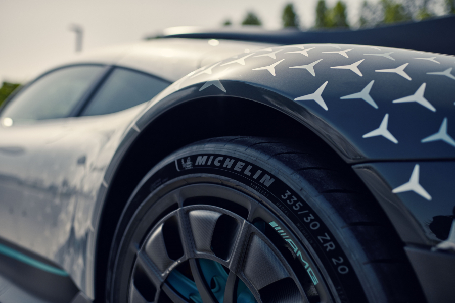 มิชลิน และ เมอร์เซเดส-เอเอ็มจี รุกสร้างประวัติศาสตร์หน้าใหม่ของความร่วมมือระหว่างกัน โดย เมอร์เซเดส-เอเอ็มจี ได้เลือก มิชลิน เป็นผู้ออกแบบยางรุ่นพิเศษสำหรับรถ ‘เมอร์เซเดส-เอเอ็มจี วัน’ ที่จะส่งเสริมสมรรถนะของไฮเปอร์คาร์รุ่นล่าสุดนี้ได้อย่างเต็มพิกัด ทั้งนี้ ยาง ‘มิชลิน ไพลอต สปอร์ต คัพ2 อาร์ – เอ็มโอ1’ พัฒนาขึ้นภายใต้ความร่วมมือระหว่างทีมงานของ มิชลิน และ เมอร์เซเดส-เอเอ็มจี เพื่อให้มีสมรรถนะเหนือระดับทั้งบนถนนและสนามแข่ง โดยสมรรถนะของยางไม่เพียงเป็นเรื่องจำเป็นสำหรับรถยนต์สมรรถนะสูงรุ่นนี้ แต่ยังส่งผลต่อความปลอดภัย ตลอดจนความแม่นยำและความเพลิดเพลินขณะขับขี่ อีกทั้งยังต้องมีคุณสมบัติช่วยส่งเสริมให้รถยนต์รุ่นนี้มีเอกลักษณ์ที่โดดเด่นเฉพาะตัว นอกจากนี้ ผู้ขับขี่ที่ชอบประลองความเร็วบนสนามแข่งยังสามารถเลือกใช้ยางประเภทสลิค (ยางเกลี้ยงไม่มีดอกยาง) ที่ออกแบบมาเพื่อการใช้งานบนสนามแข่งโดยเฉพาะได้