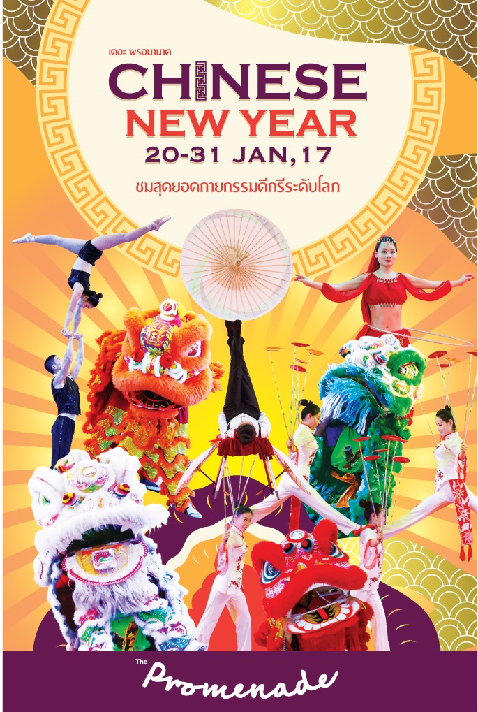 ต้อนรับตรุษจีน…ยิ่งใหญ่ เดอะ พรอมมานาด ไลฟ์สไตล์ มอลล์ จัดงาน Chinese New Year 2017 ระหว่างวันที่ 20 – 31 มกราคม 2560 นี้ ตื่นตากับ คณะกายกรรมอู๋เฉียว ต้นแบบแห่งกายกรรมในตำนาน และเป็นสุดยอดกายกรรมดีกรีระดับโลกจากแดนมังกร เมืองอู๋เฉียว สาธรารณรัฐประชาชนจีน มาให้อึ้ง ทึ่ง ระทึก แบบไม่เหมือนใคร ถึง 8 ชุดการแสดง ( แสดงระหว่าง 27 – 28 มกราคม 2560 เวลา 18.00 น. เป็นต้นไป )