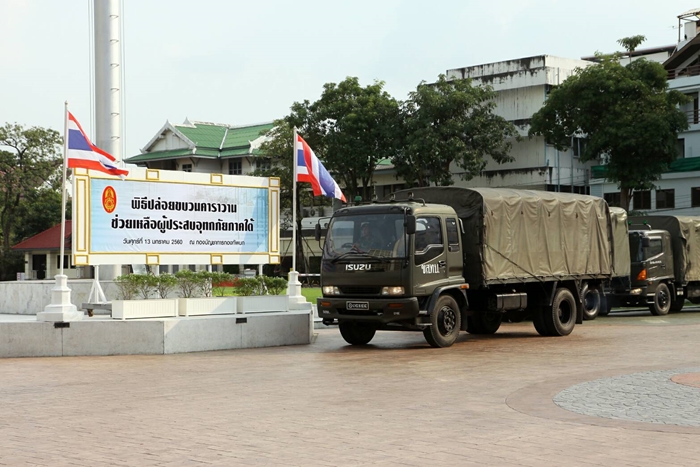 รวมทั้งเข้าร่วมปล่อยขบวนคาราวานจำนวน 30 คัน ในการนำสิ่งของไปมอบให้พี่น้องประชาชนที่ ได้รับความเดือดร้อนจากประสบอุทกภัยในครั้งนี้ ณ กองบัญชาการกองทัพบก