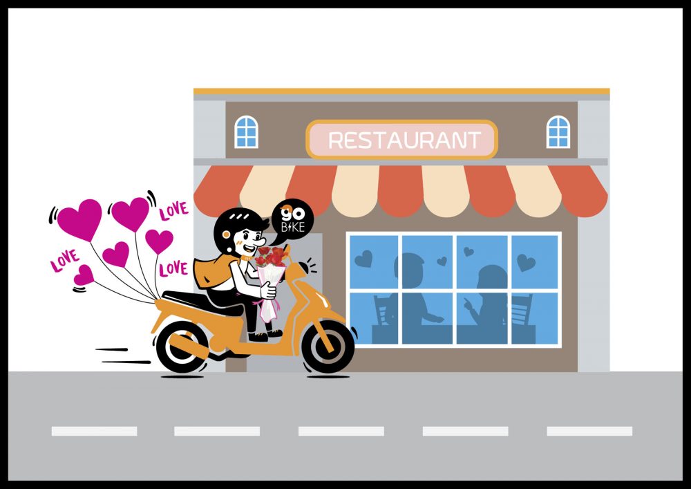 บริษัท โกไบค์ จำกัด ผู้ให้บริการแอพลิเคชั่นเรียกใช้บริการมอเตอร์ไซค์ จับมือกับ Chope ประเทศไทย ร่วมมอบประสบการณ์โรแมนติกให้แก่คู่รักที่สำรองโต๊ะร้านอาหาร ซึ่งได้รวบรวมไว้ให้เลือกหลากหลาย อาทิ ร้านอาหารอิตาเลี่ยน Theo Mio ร้านอาหารฝรั่งเศส Water Library Brasserie หรือร้านอาหารบนรูฟท็อป Vertigo TOO ผ่านทางแอพลิเคชั่น Chope สำหรับมื้อพิเศษในค่ำคืน วันที่ 14 กุมภาพันธ์ 2560 เพียงใส่รหัสโปรโมชั่น “VDAY” เพื่อรับสิทธิ์พิเศษสำหรับ 50 ท่านแรกจะได้รับช่อดอกไม้ส่งตรงถึงมือโดยทีมงาน GoBike